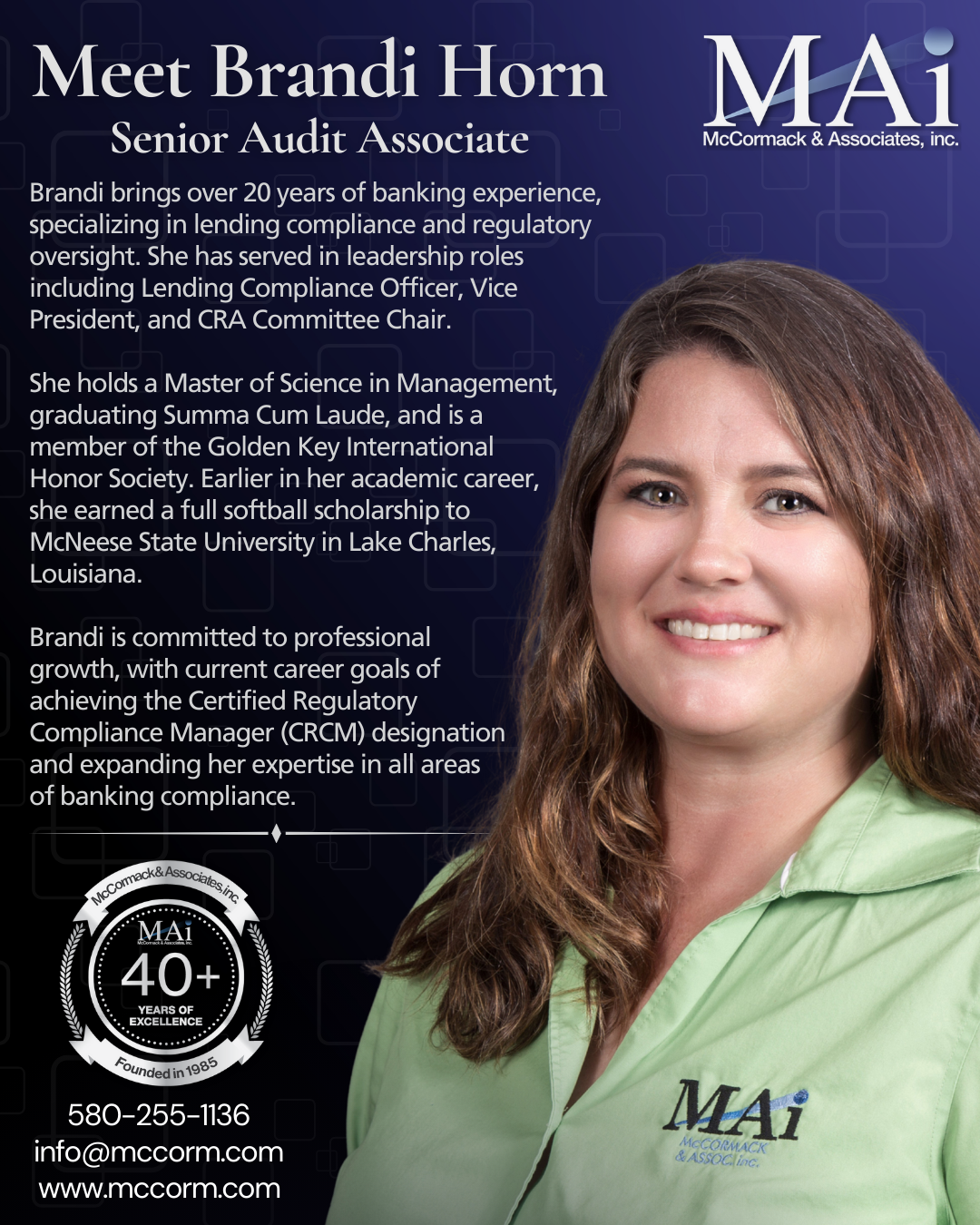 August 22, 2025Say hello to Brandi Horn, a steadfast guardian of compliance in our banking world, blending over two decades of expertise in lending oversight with a leadership flair that inspires trust and precision. From her trailblazing roles as Lending Compliance Officer and Vice President to her Summa Cum Laude Master’s in Management, Brandi’s journey exemplifies relentless drive and unyielding integrity.